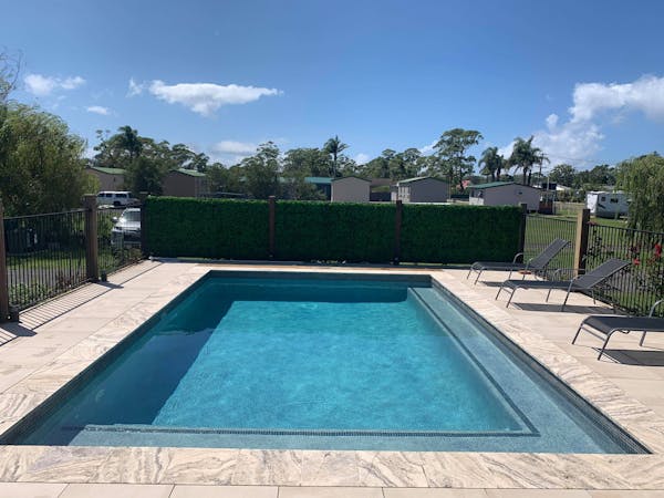 These two cabins are ultra modern and have been fitted with the best finishes. The spacious Jarrah deck overlooks our contemporary style new concrete solar heated pool and BBQ area.