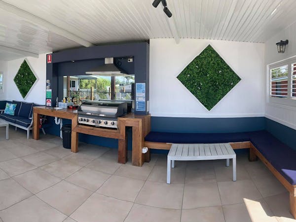 Uniquely designed. We have 6 units which are 2 bedroom & self contained. They all wrap around the great large deck which flows onto the covered communal BBQ area which overlooks the tranquillity of the inlet and our private jetty.