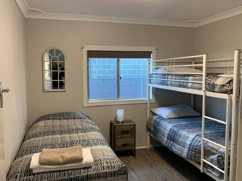 - Bedroom 2 has a single bed and 1 set of bunk beds
